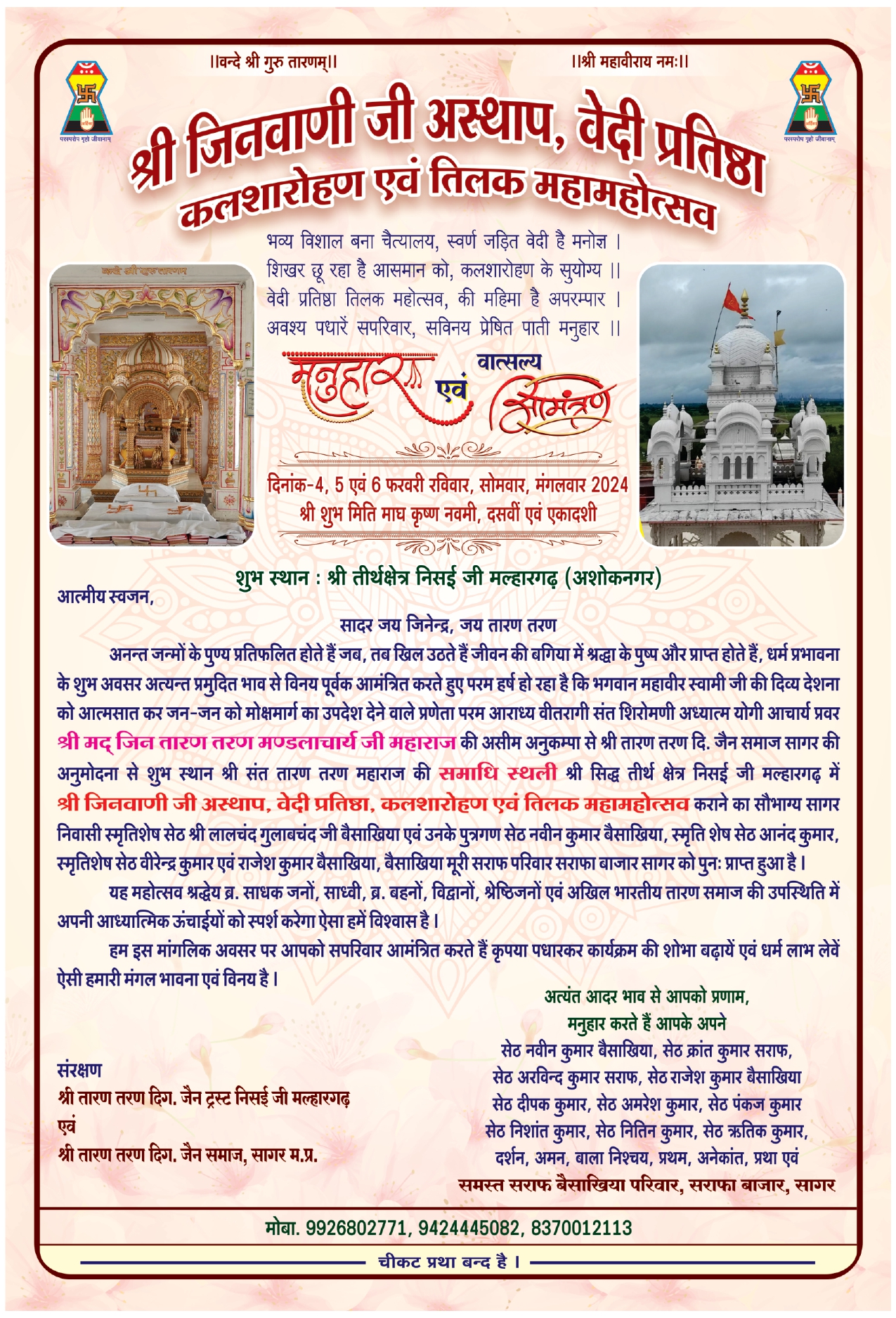 अशोकनगर की मुंगावली तहसील से १४ व कुरवाई से २० किलोमीटर दूर निसईजी या बडी निसईजी पिपरिया मल्हारगढ़ स्थित तारण समाज का सबसे बडा तीर्थक्षेत्र है।यहाँ अति विशाल मंदिर-धर्मशाला है। यहां भव्य शिखर से सुशोभित प्राचीन नक्काशी दार चैत्यालय स्मारक तारण स्वामी का समाधि स्थल है। यहां पर प्राचीन शिल्पकला देखने को मिलती है। मध्यकालीन राजपूत शैली में निर्मित यह क्षेत्र के मंदिर में स्वर्णमंडित चार वेदियां स्थापित हैं।जिन पर जिनेंद्र भगवान की वाणी जिनवाणी विराजमान है। यहां एक मूल वेदी है जिसके पीछे पाषाण निर्मित सर्वप्राचीन राजमंदिर वेदीजी एवं दोनों तरफ वेदिका है।